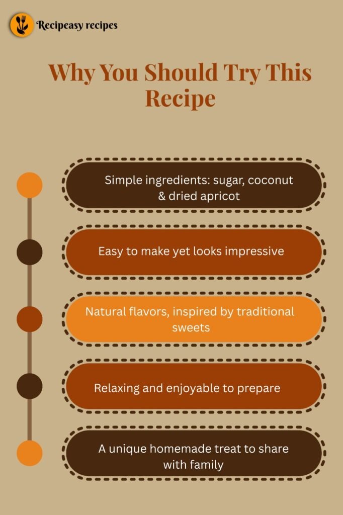 Apricot joy is one of the simplest candies to make at home, even though it may look difficult. Sugar, coconut, and dried apricots can be combined to create a dessert that tastes as good as it looks.