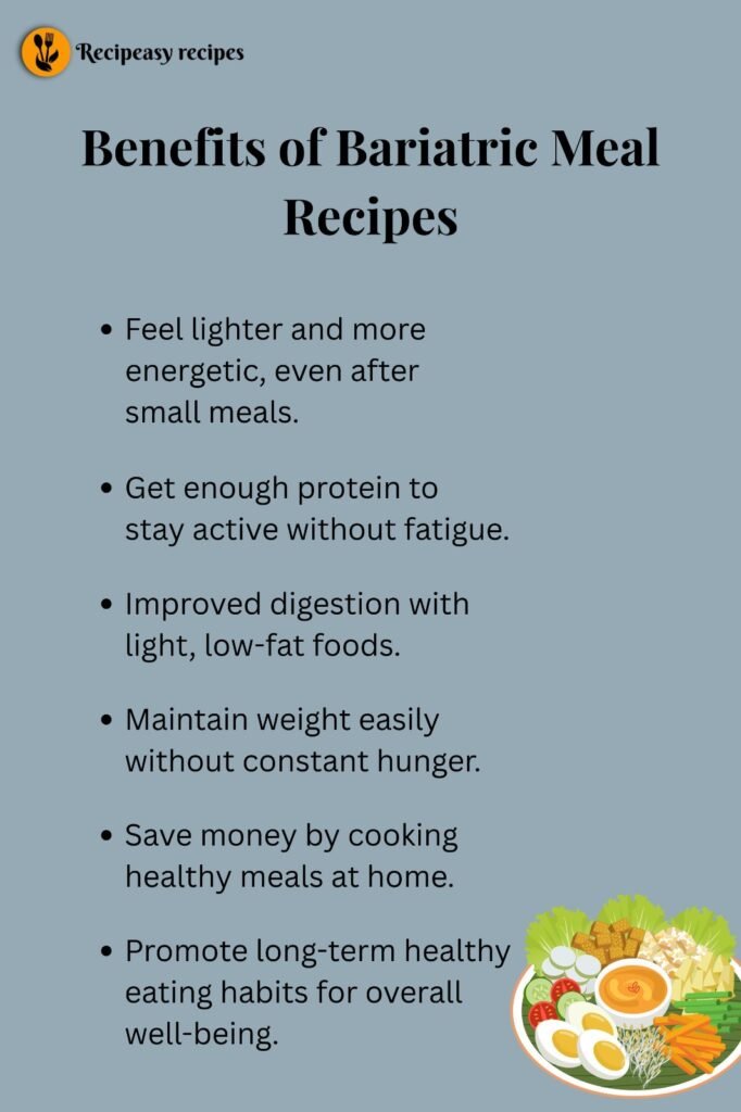There were several benefits I experienced after cooking and eating bariatric meal recipe for a while. First, even after having tiny amounts of food, I feel lighter and have more energy. I consume enough protein, so I don’t get tired easily. Additionally, because the food isn’t fatty or heavy, my digestion has much improved.