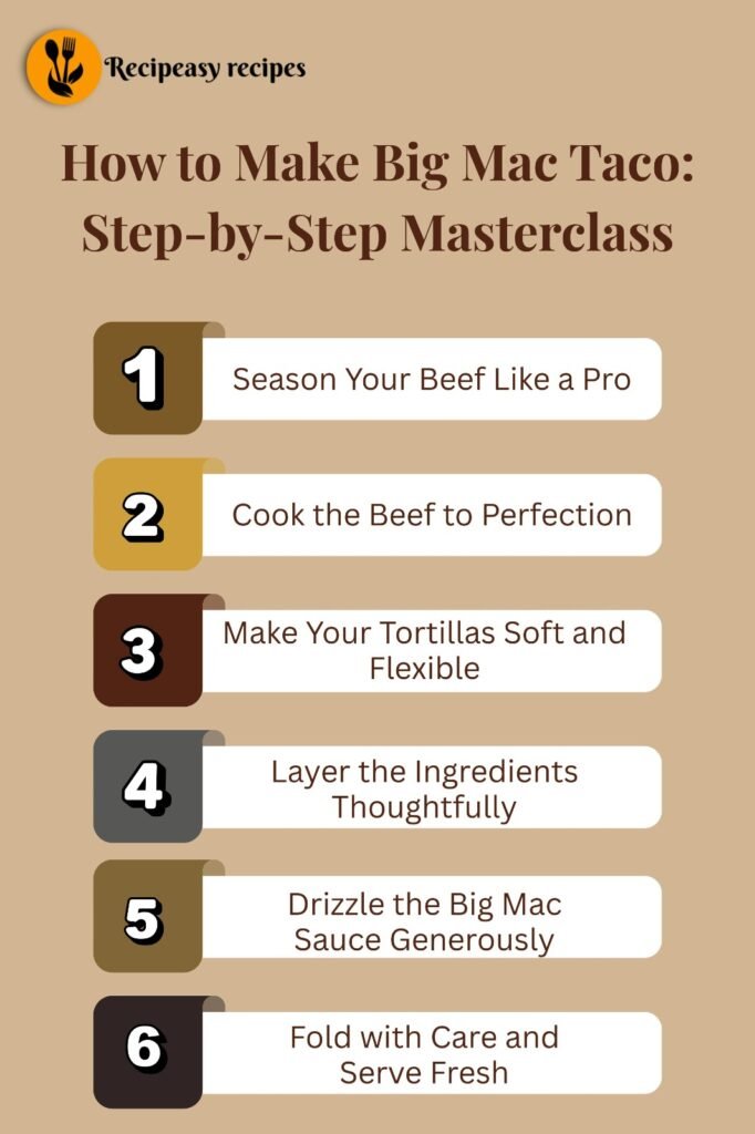 Turning a classic Big Mac into a taco is all about precision, layering, and flavor balance. Follow these steps to create tacos that are juicy, crunchy, and packed with the iconic Big Mac taste.