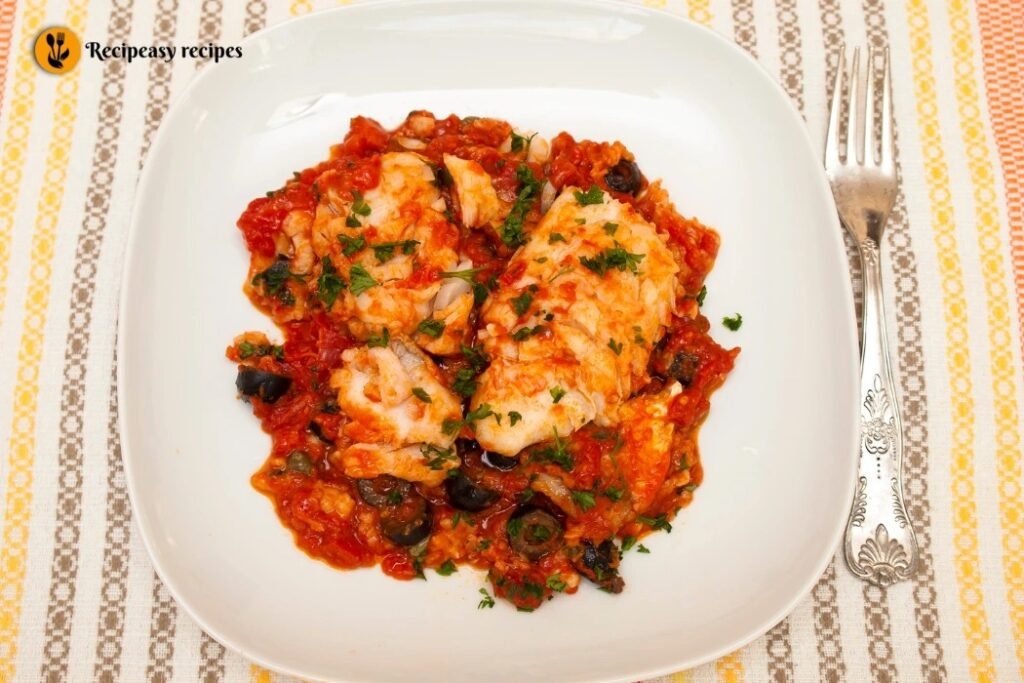 Each ingredient contributes to the layered flavors of this recipe earthy olive oil, sweet tomatoes, and the mild saltiness of the codfish create a balance that defines authentic Italian comfort food.